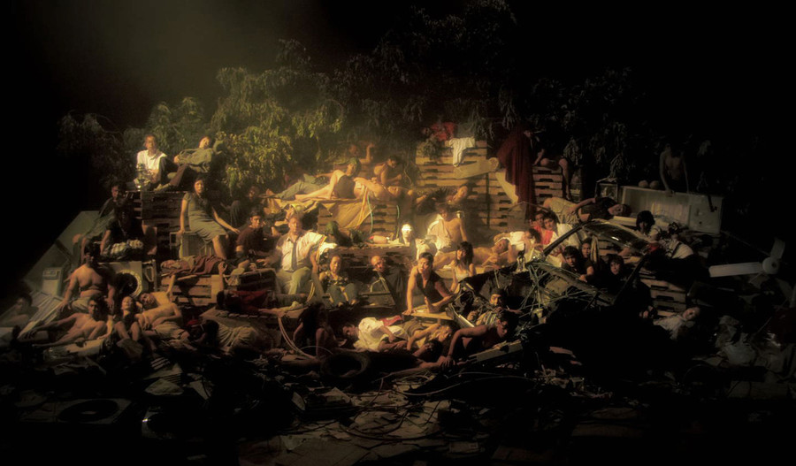 Hipnotyzująca postapokaliptyczna alegoria, obraz wideo dorównujący malarskim pierwowzorom, zbudowany ze światła, muzyki, ludzkich ciał, przedmiotów i roślin. Wszystko to zostało ułożone w kompozycję - pozornie bezładną, w rzeczywistości niezwykle precyzyjną - a następnie ukryte w mroku. Kamera płynnie niczym wąż prześlizguje się po tym butwiejącym królestwie pełnym dramatycznych póz i gestów, jakby wyjętych z twórczości Caravaggia. Raz srebrny, metaliczny, innym razem ciepły blask ujawnia świeże rany, nieobecne spojrzenia, aksamitną gładkość skóry. Gdy w świetle lamp materia ożywa, w kadrze odgrywane są fragmenty sennego spektaklu. Gdy kamera oddala się i zatrzymuje, obejmując całą scenę, na myśl przychodzą romantyczne przedstawienia w rodzaju Tratwy Meduzy Théodore'a Géricaulta. Earth wydaje się bliska ostatnim eksperymentom Petera Greenawaya, odkrywającym za pomocą technologii cyfrowych klasyczne dzieła malarstwa, ich formalne piękno i wciąż aktualny, domagający się rozszyfrowania przekaz.